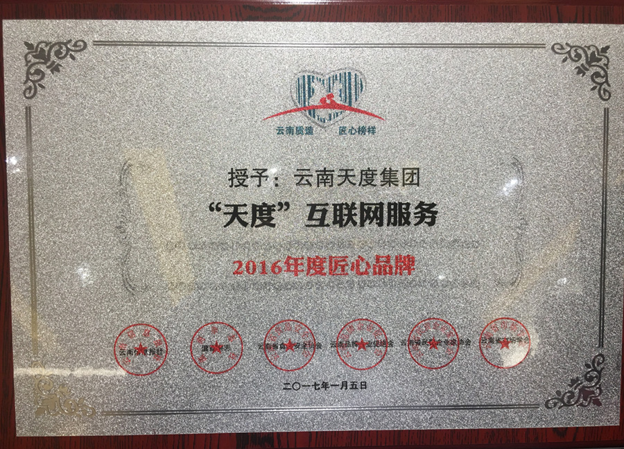 2016年10月底,由云南信息报、滇商杂志、云南省食品协会、云南品牌企业促进会、云南省民营企业家协会、云南省市场学会6家机构联合发起了“寻找2016云南良心/匠心品牌”活动。报名阶段采用了社会推荐/企业自荐/机构推荐三种方式,经过2个月的社会推荐、民意调查、网络投票和评审评委会审定,共有245家企业获得社会推荐,评选出了20家良心品牌、20家匠心品牌和4家特别贡献奖及20家提名企业,尊龙凯时在245家提名企业中脱颖而出,被评选为20家“2016匠心品牌”。